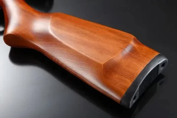 - Culata de madera lustrada con cantonera de goma.